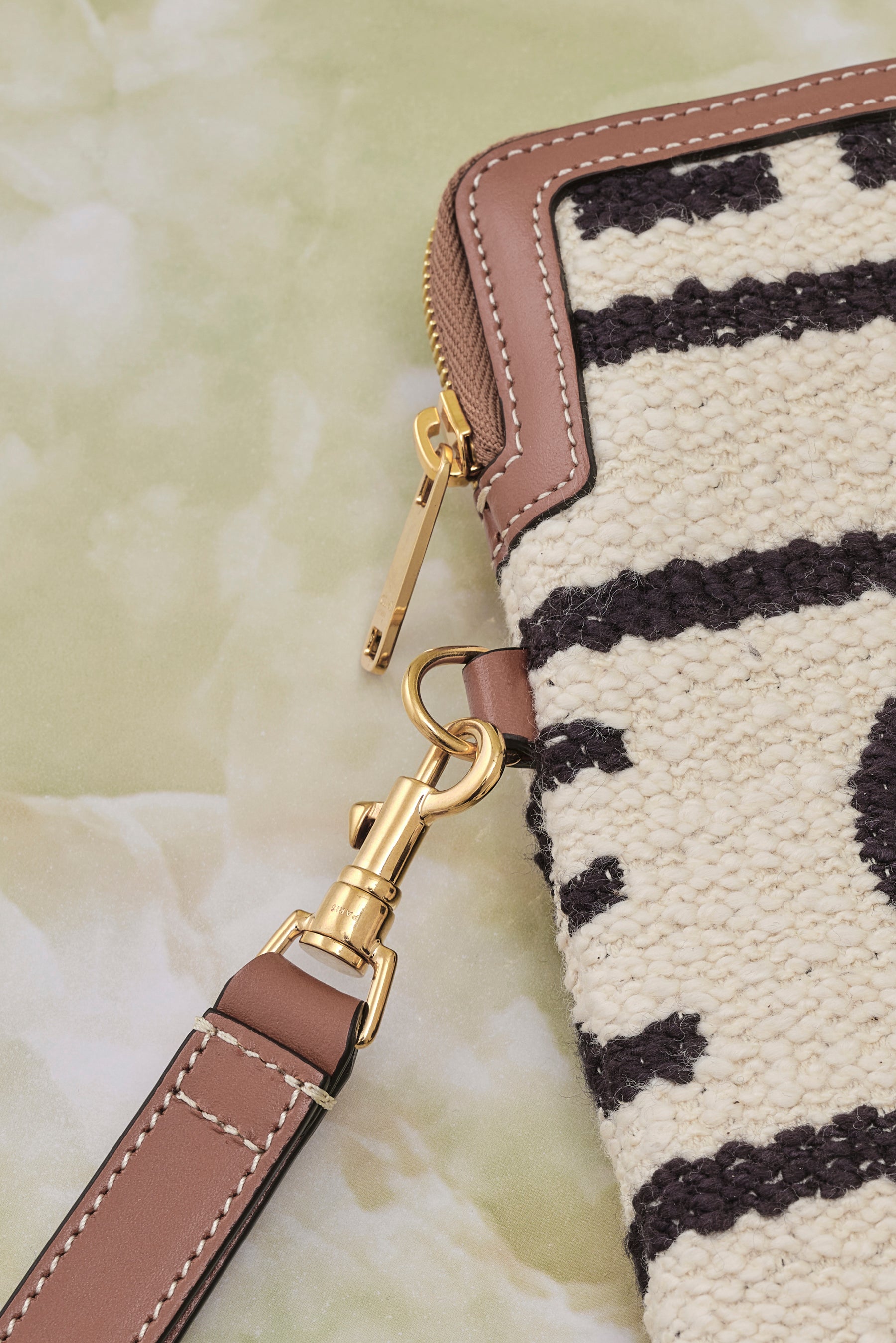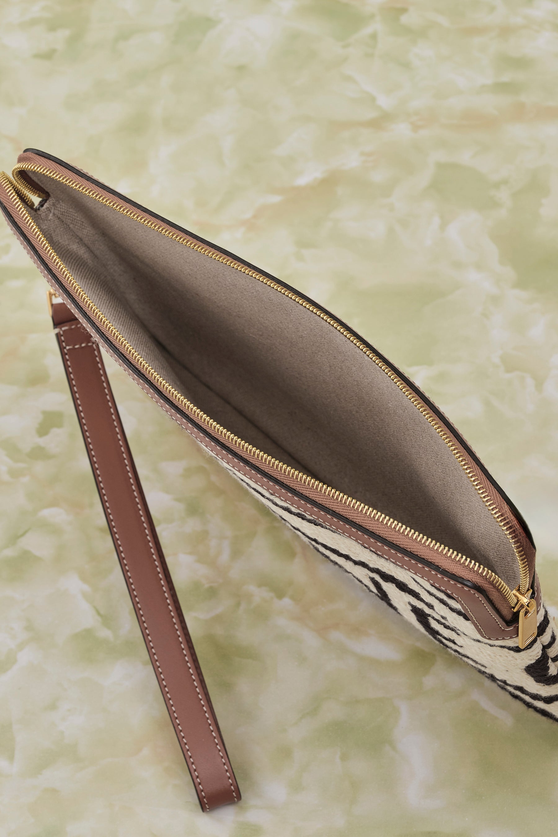 テキスタイル,カーフスキン テキスタイルライニングのトリミングゴールド仕上げ,ハンドキャリー,ジップ式クロージャー,1つのメインコンパートメント,取り外し可能なリストストラップ(20cm)