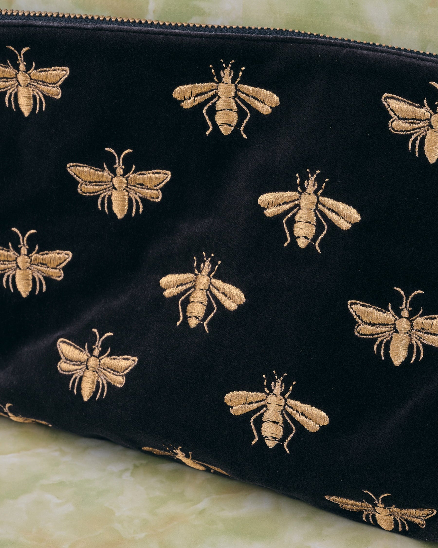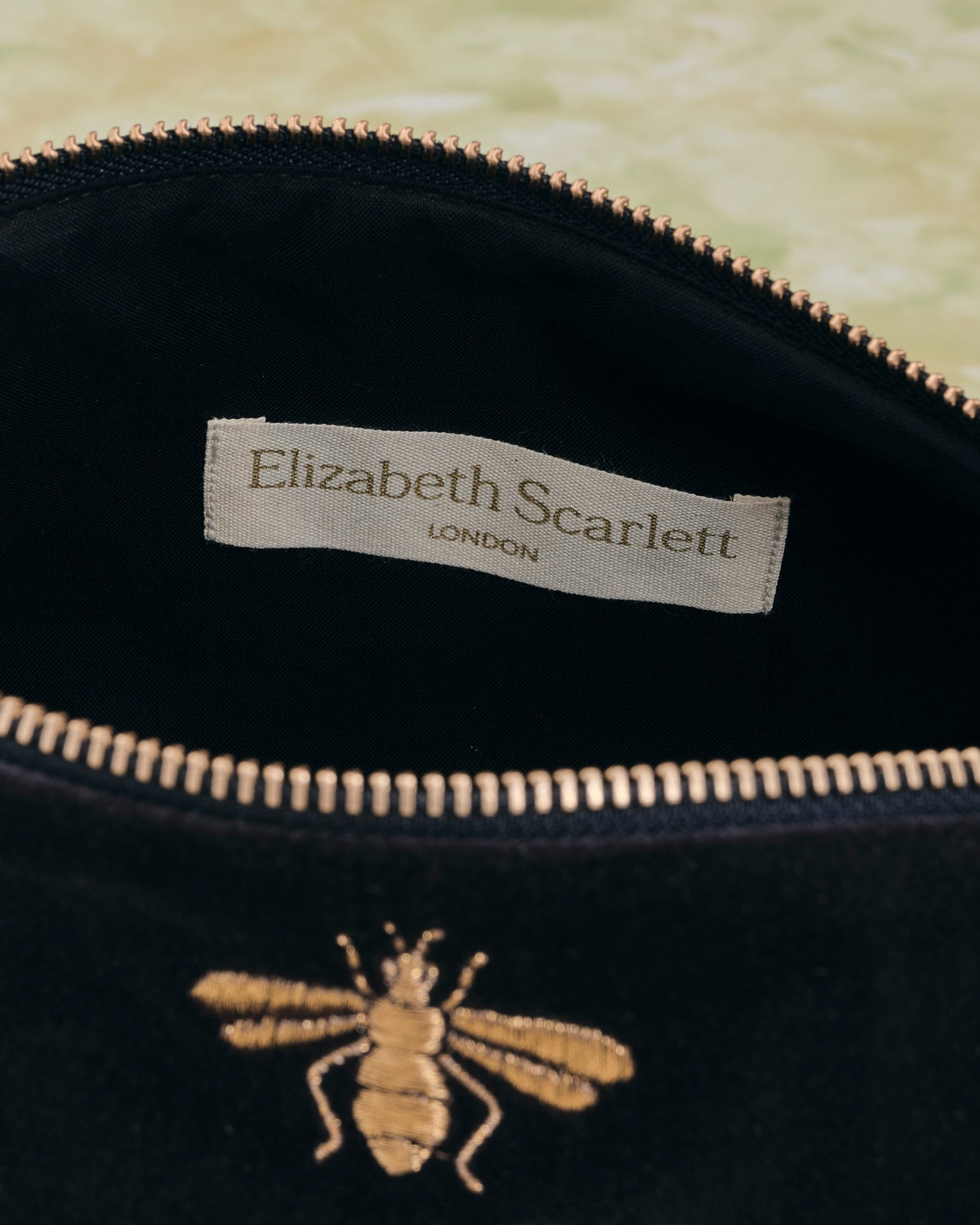 柔らかくて丈夫な生地に繊細な刺繍を施した、ラグジュアリーなデザイン。ハンドバッグに入れたり、クラッチバッグとしても使用できます。